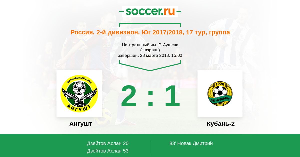 Ангушт - Кубань-2: обзор матча 28 марта 2018