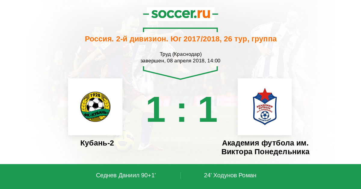 Кубань-2 - Академия футбола им. Виктора Понедельника: обзор матча 8 апреля 2018