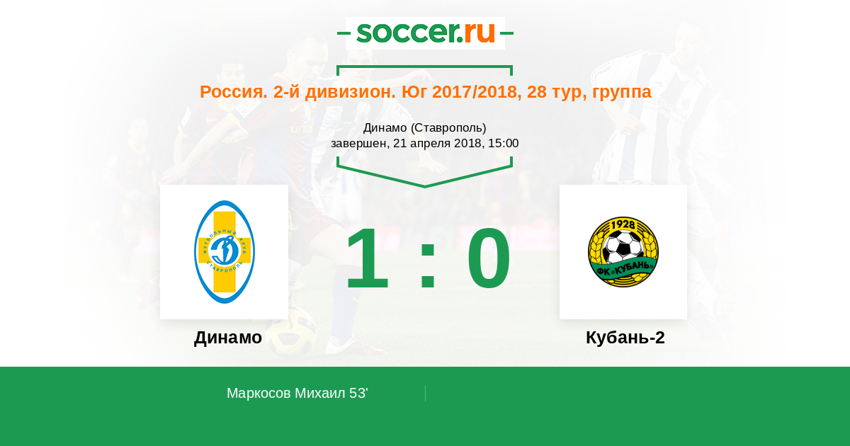 Динамо Ставрополь - Кубань-2: обзор матча 21 апреля 2018