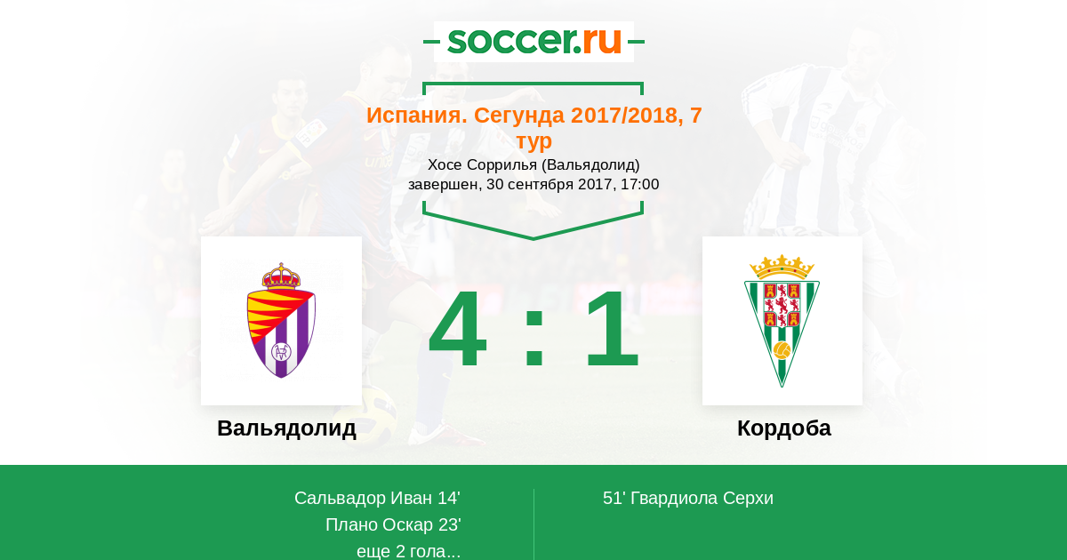 Вальядолид - Кордоба: обзор матча 30 сентября 2017
