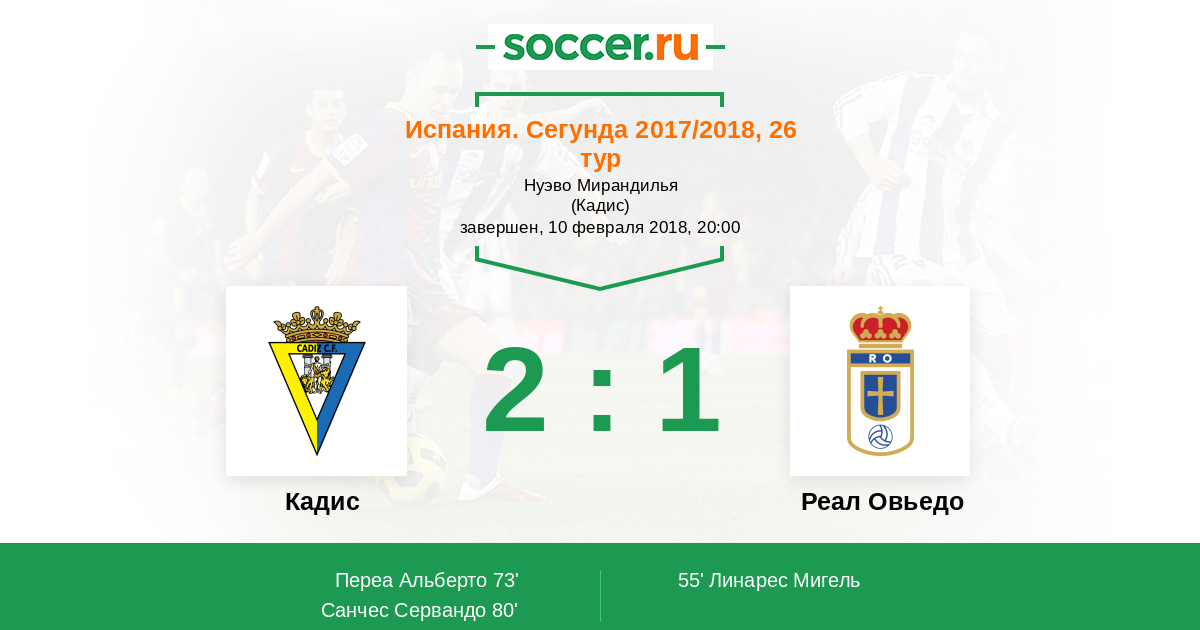 Кадис - Реал Овьедо: обзор матча 10 февраля 2018