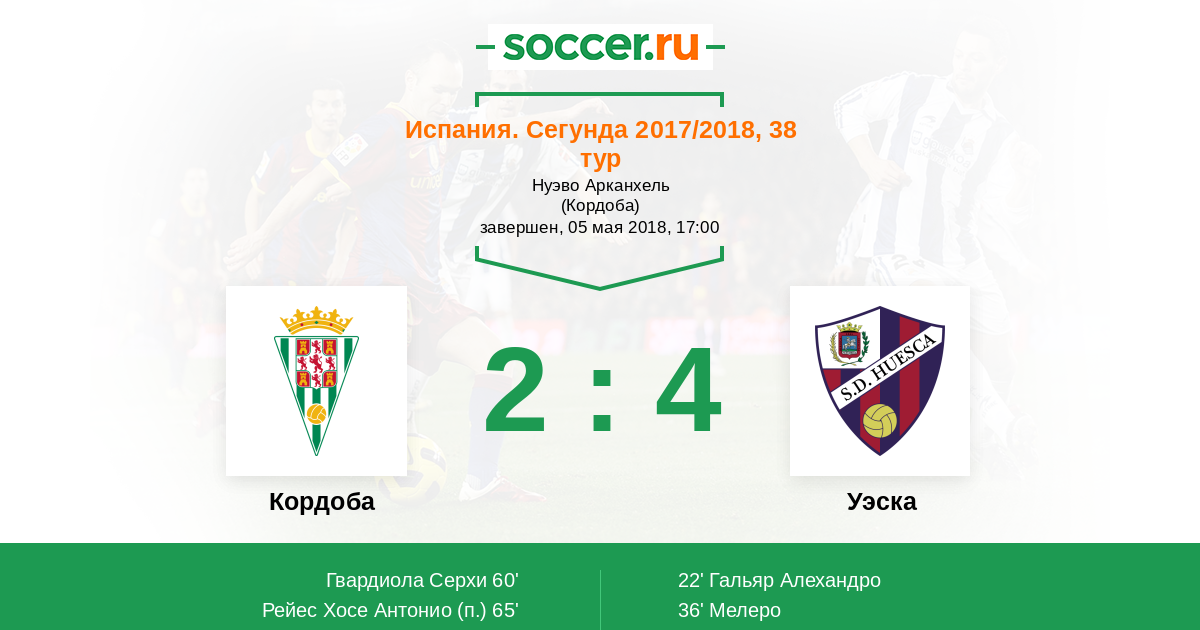 Кордоба - Уэска: обзор матча 5 мая 2018