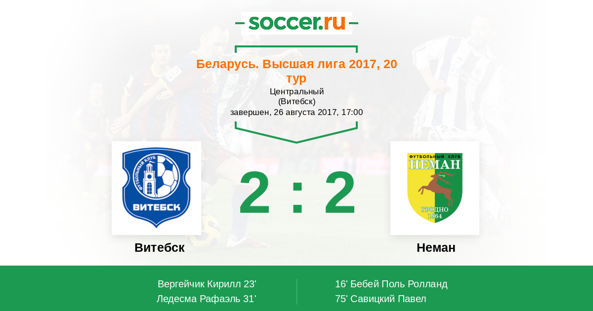 Витебск - Неман: обзор матча 26 августа 2017
