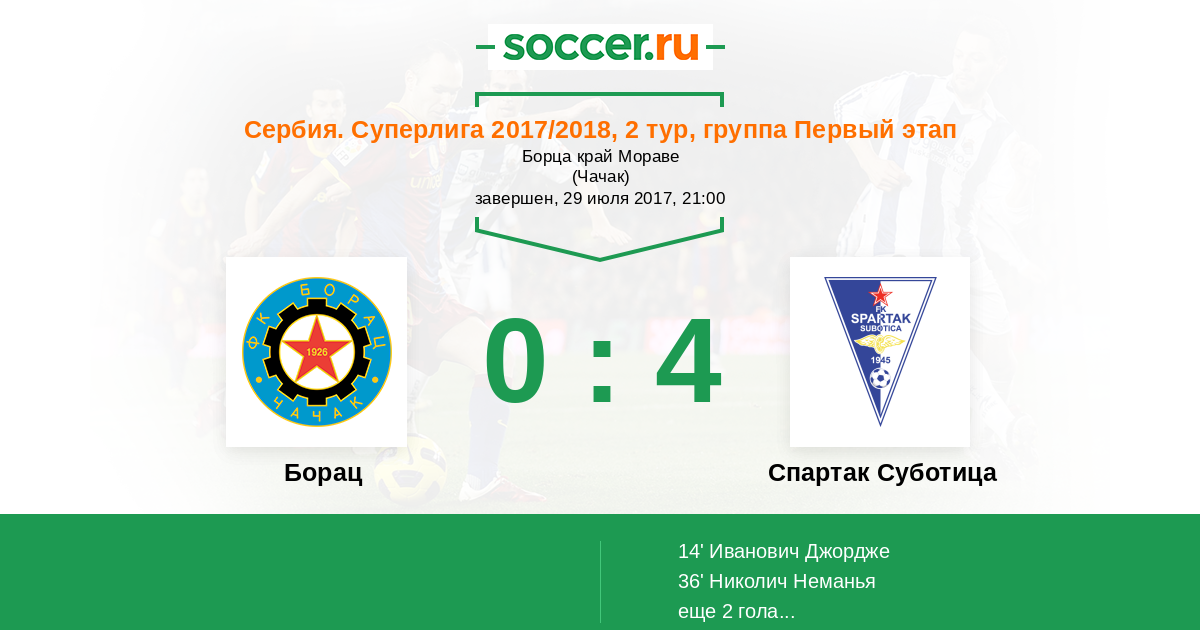 Борац - Спартак Суботица: обзор матча 29 июля 2017
