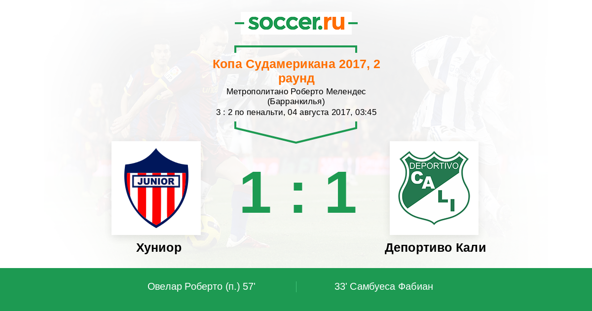 Хуниор - Депортиво Кали: обзор матча 4 августа 2017
