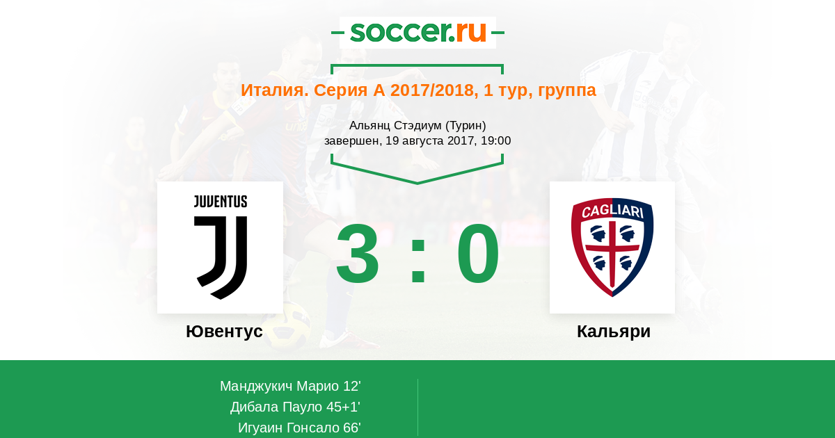 Ювентус - Кальяри: обзор матча 19 августа 2017