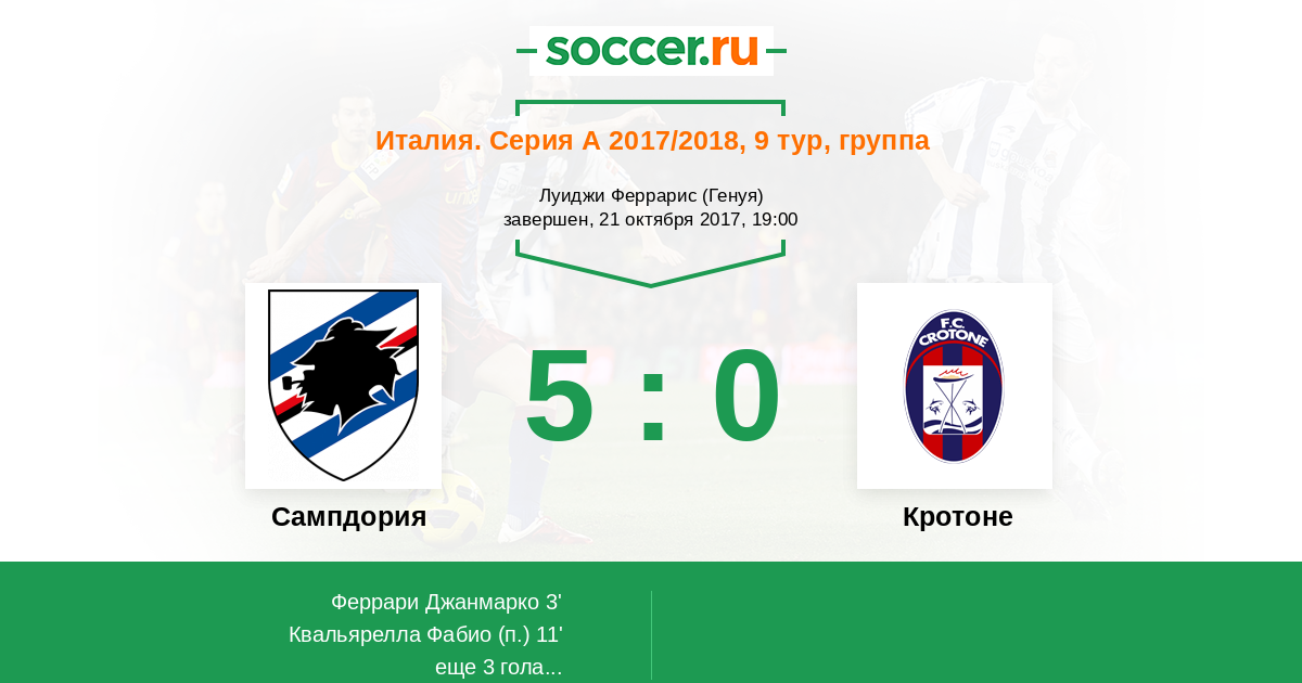 Сампдория - Кротоне: обзор матча 21 октября 2017