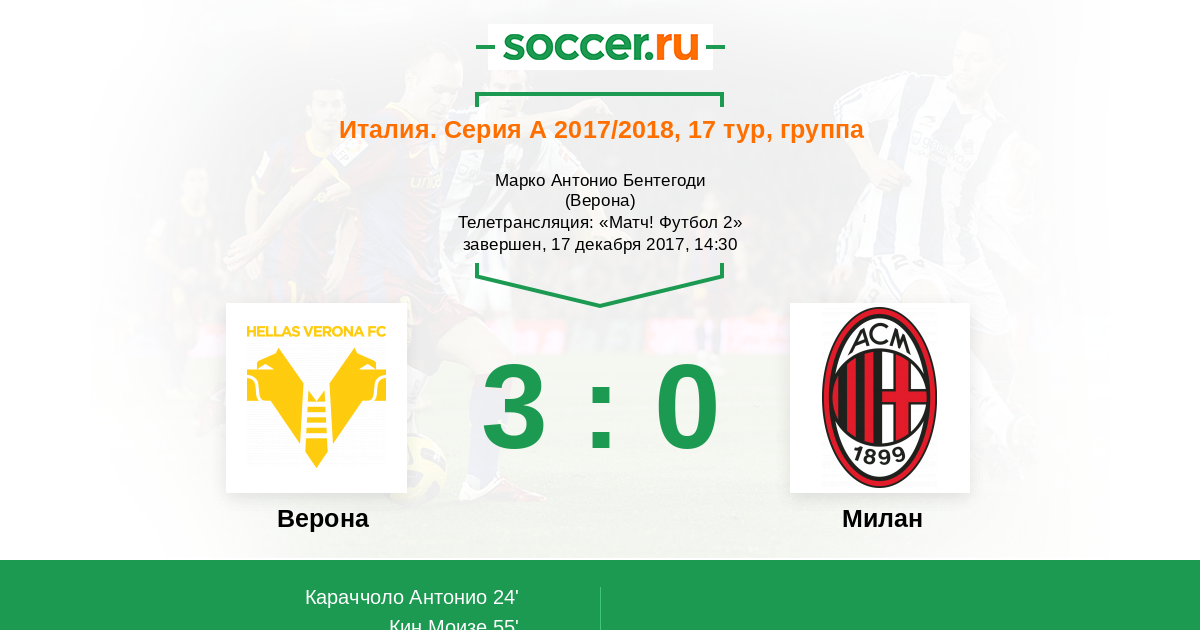 Верона, Марко Антонио Бентегоди Телетрансляция: «Матч! Футбол 2»