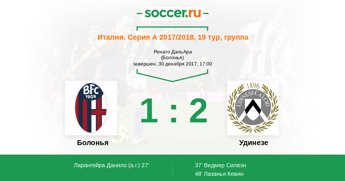 Болонья - Удинезе: обзор матча 30 декабря 2017