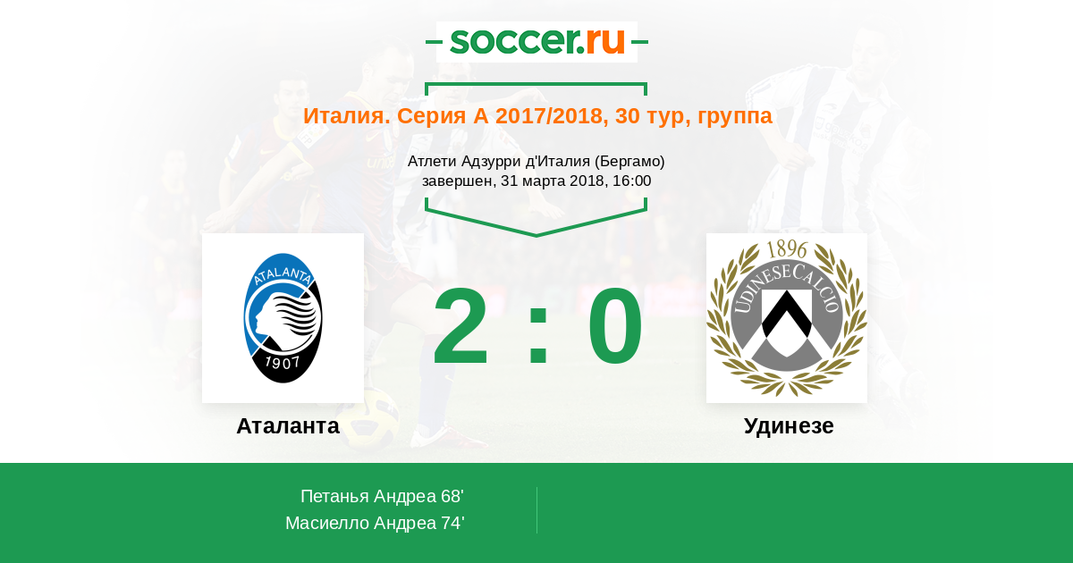 Аталанта - Удинезе: обзор матча 31 марта 2018