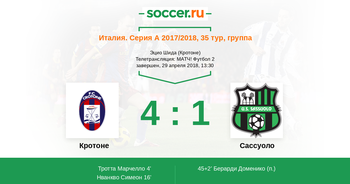 Кротоне - Сассуоло: обзор матча 29 апреля 2018