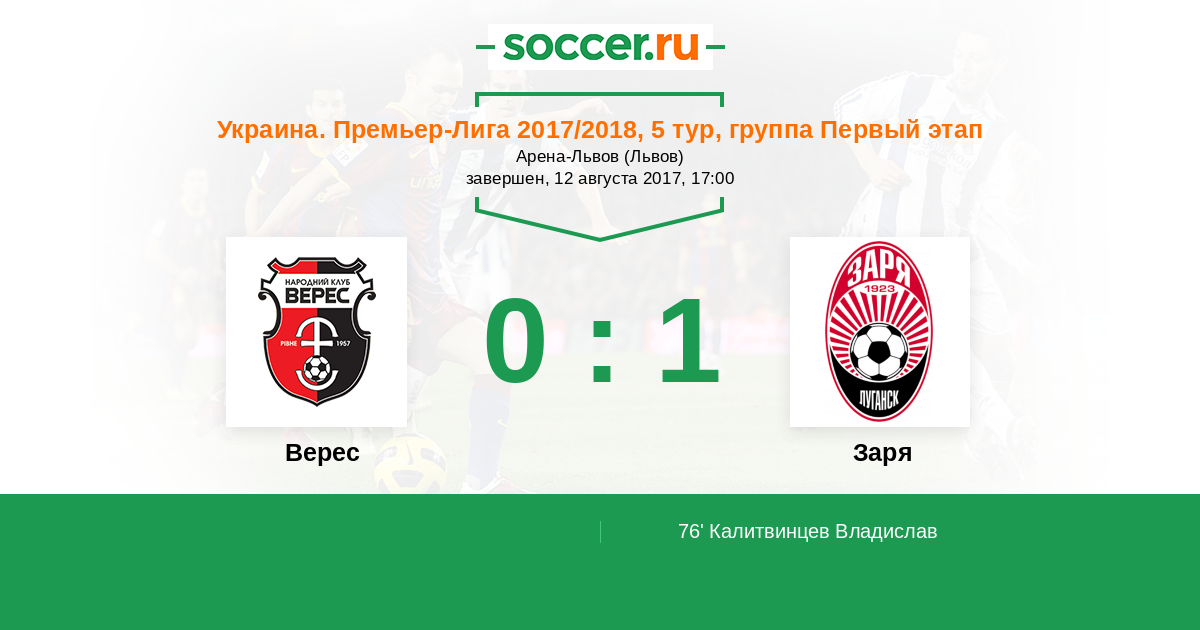 Верес - Заря: обзор матча 12 августа 2017