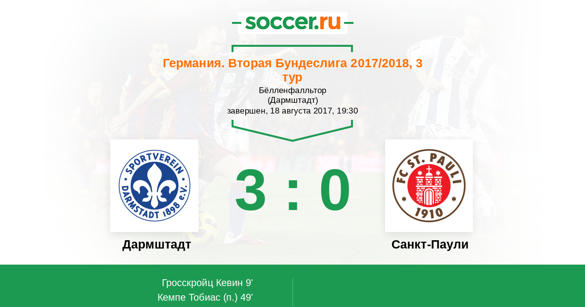 Дармштадт - Санкт-Паули: обзор матча 18 августа 2017