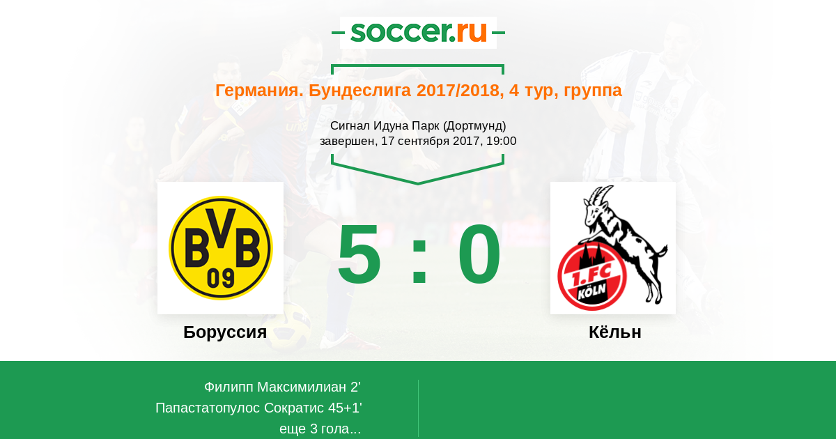 Боруссия - Кёльн: обзор матча 17 сентября 2017