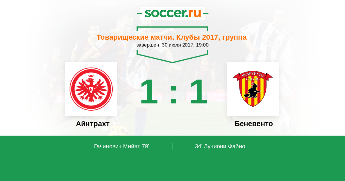 Айнтрахт - Беневенто: обзор матча 30 июля 2017