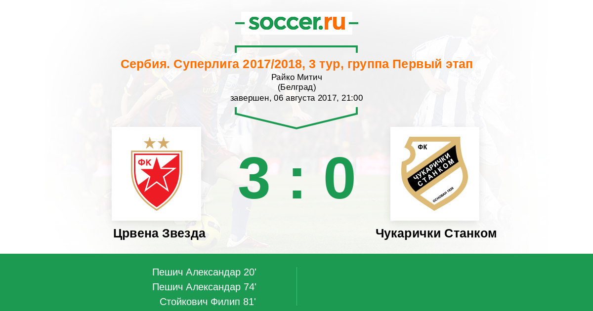 Црвена Звезда - Чукарички Станком: обзор матча 6 августа 2017