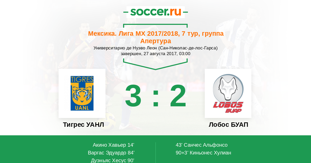 Тигрес УАНЛ - Лобос БУАП: обзор матча 27 августа 2017