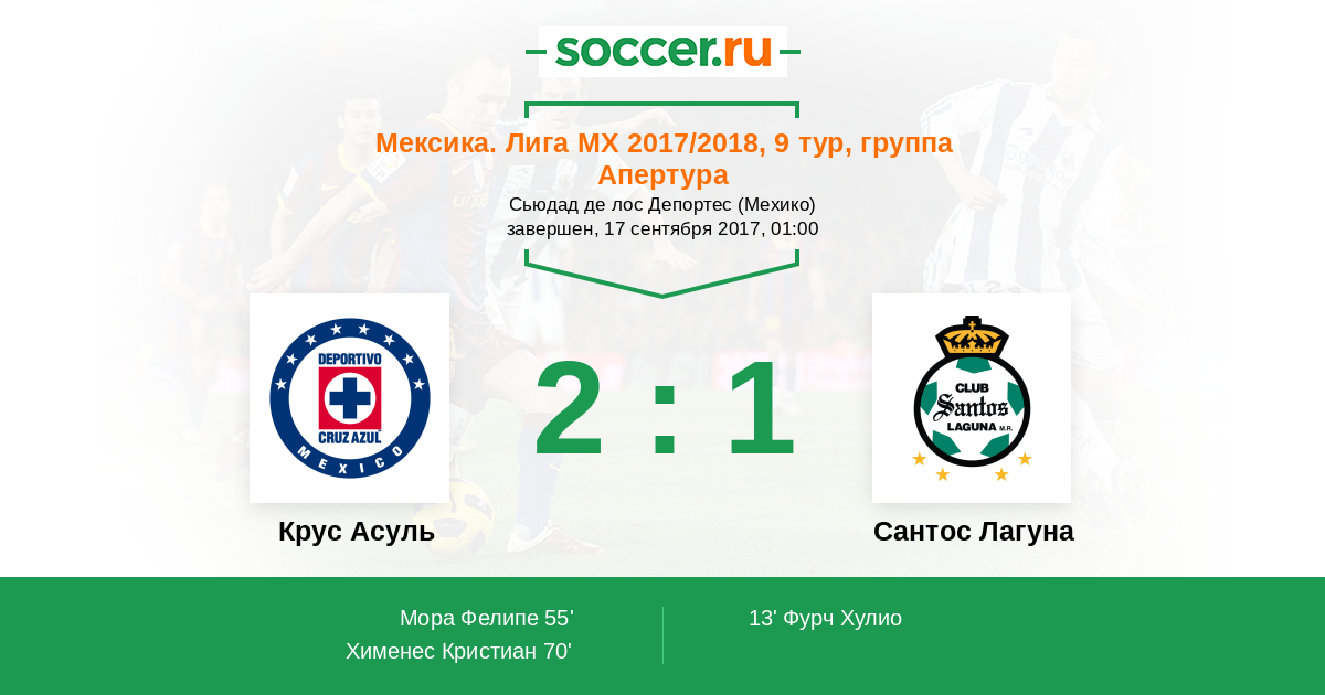 Крус Асуль - Сантос Лагуна: обзор матча 17 сентября 2017