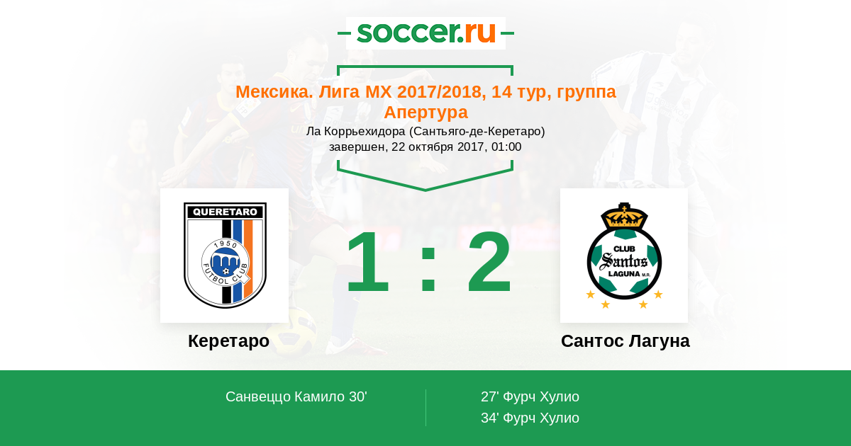 Керетаро - Сантос Лагуна: обзор матча 22 октября 2017