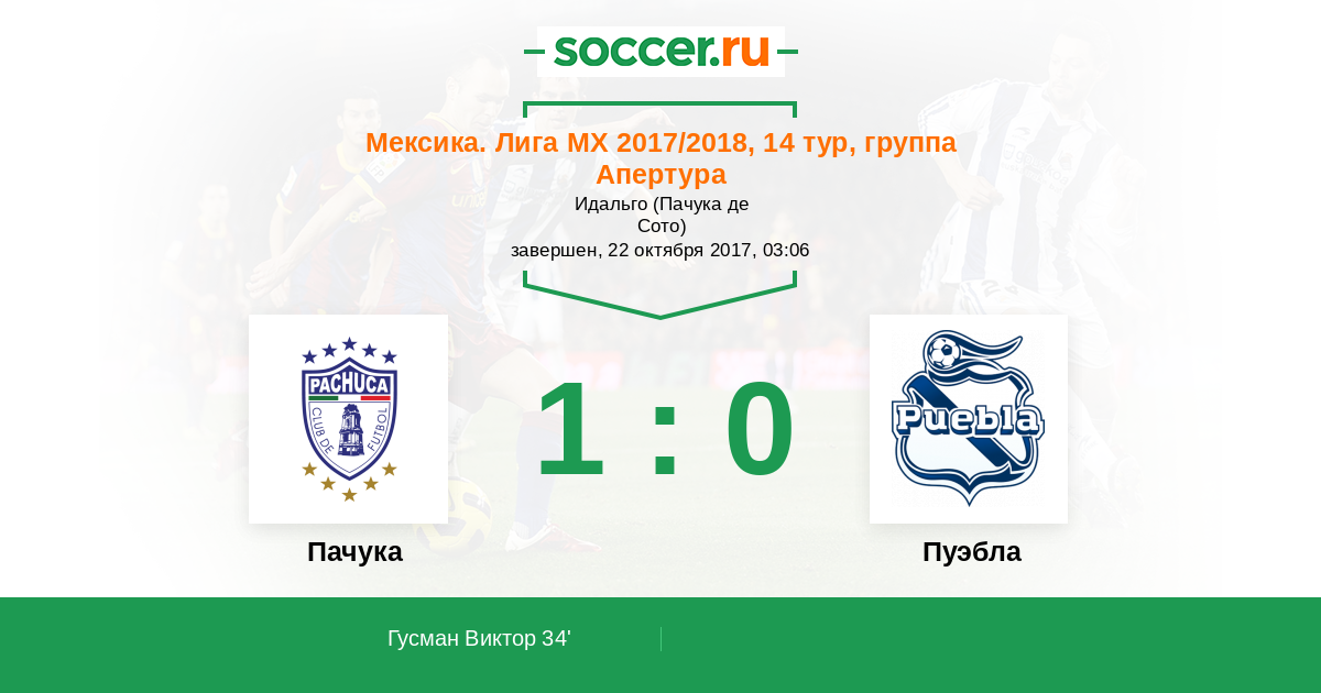 Пачука - Пуэбла: обзор матча 22 октября 2017