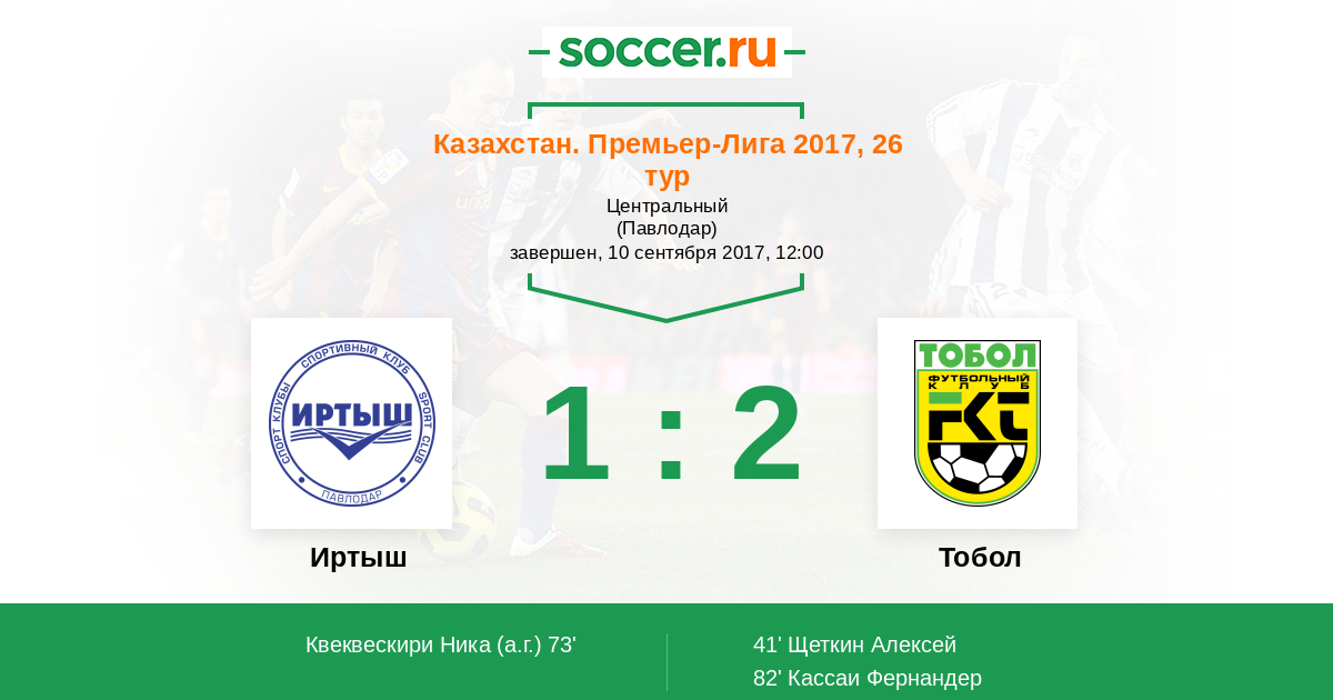 Иртыш - Тобол: обзор матча 10 сентября 2017