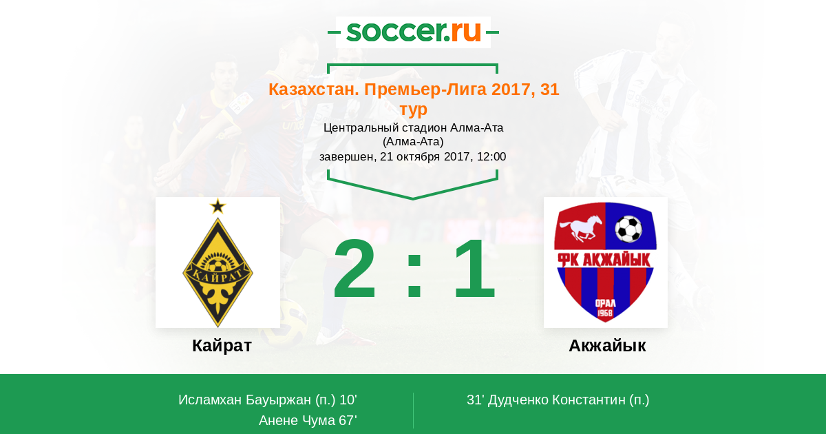 Кайрат - Акжайык: обзор матча 21 октября 2017