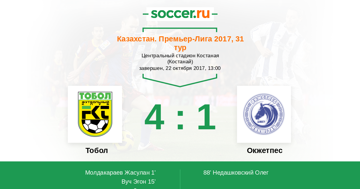 Тобол - Окжетпес: обзор матча 22 октября 2017