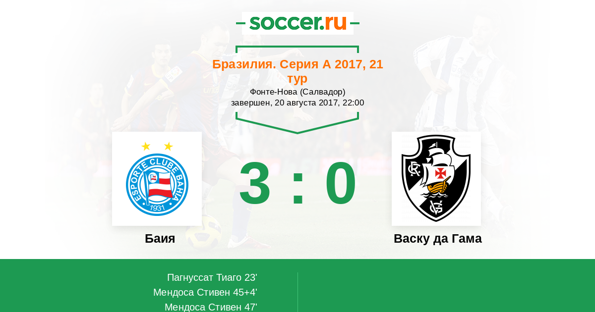 Баия - Васку да Гама: обзор матча 20 августа 2017