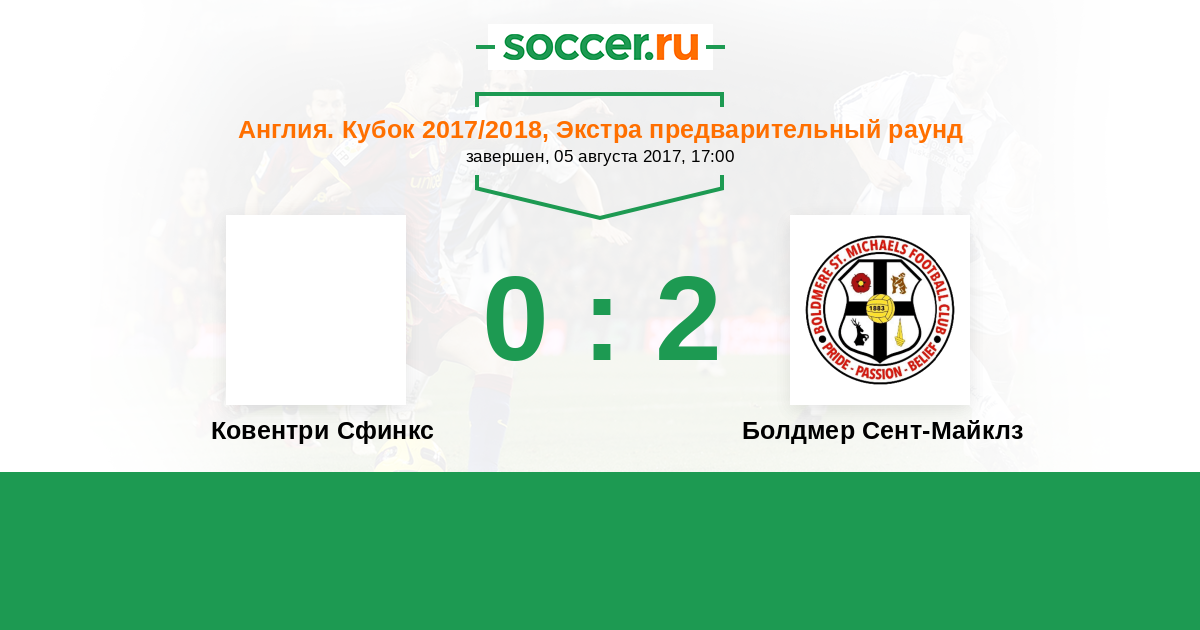 Ковентри Сфинкс - Болдмер Сент-Майклз: обзор матча 5 августа 2017