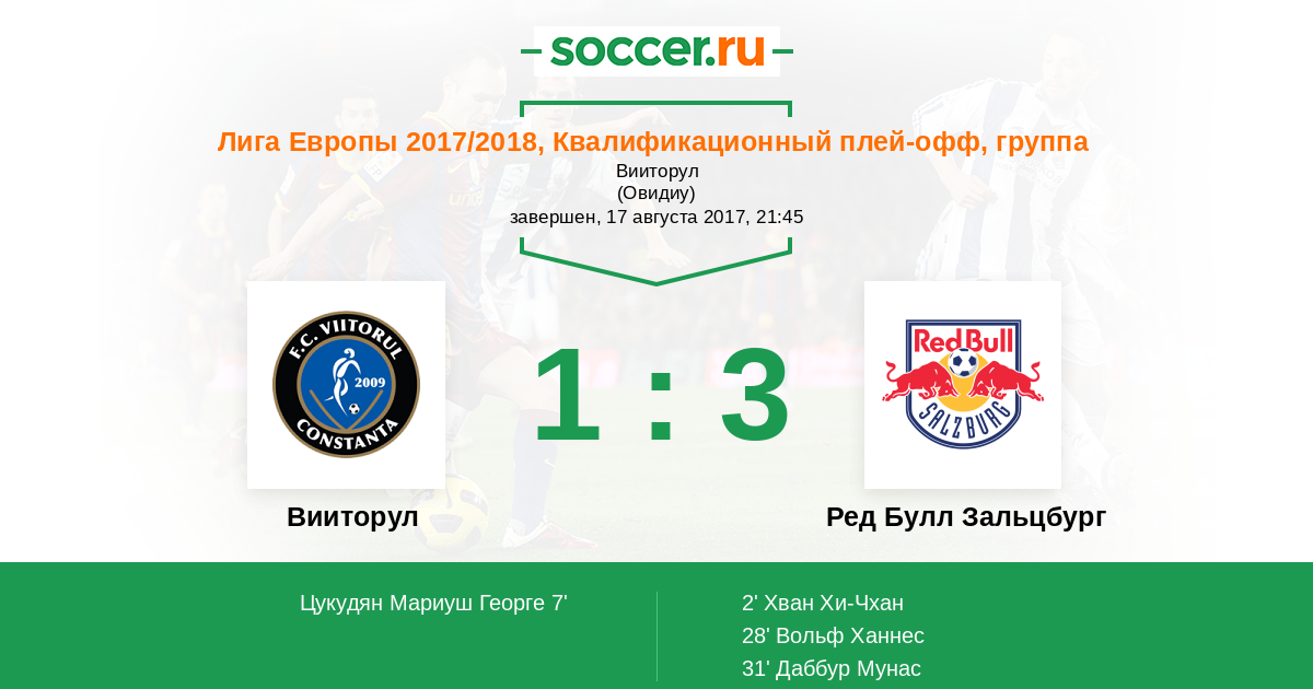 Вииторул - Ред Булл Зальцбург: обзор матча 17 августа 2017