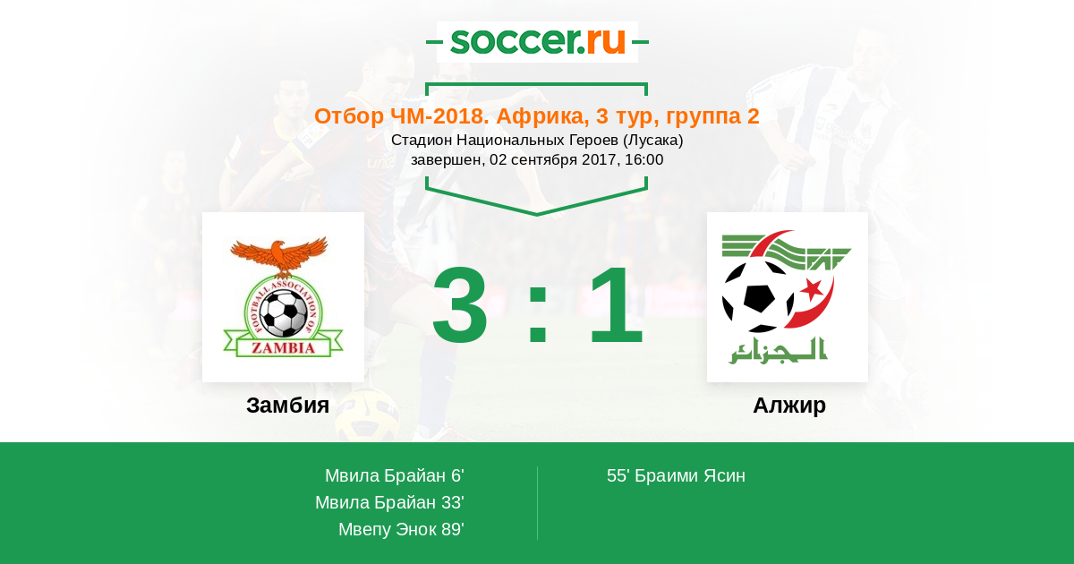 Замбия - Алжир: обзор матча 2 сентября 2017