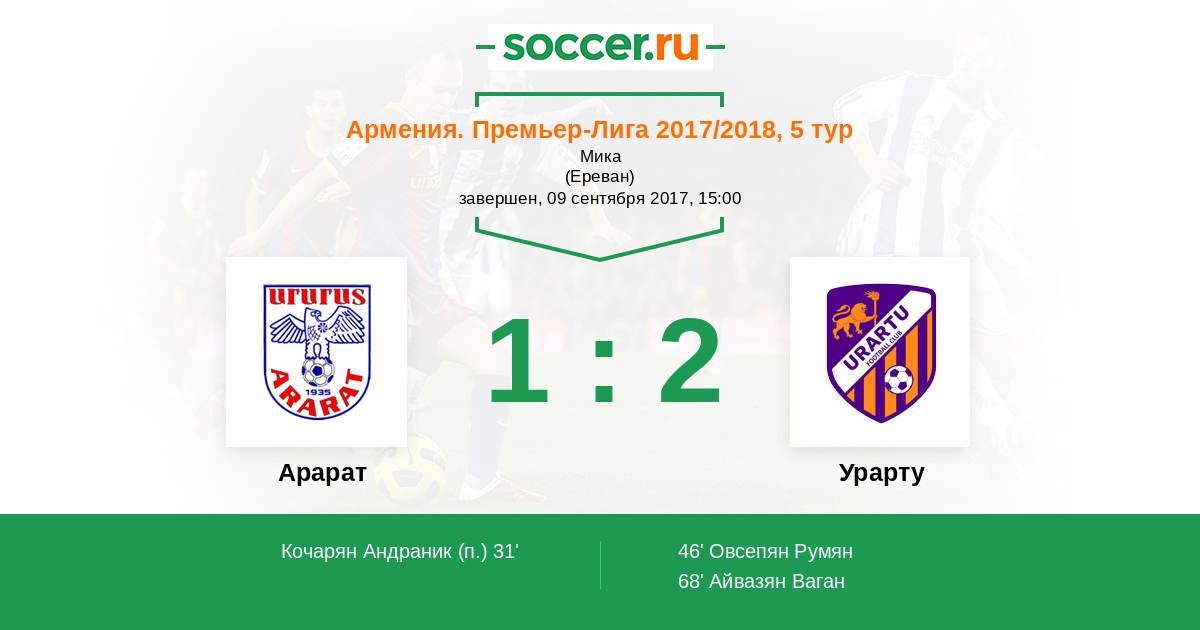 Арарат - Бананц: обзор матча 9 сентября 2017