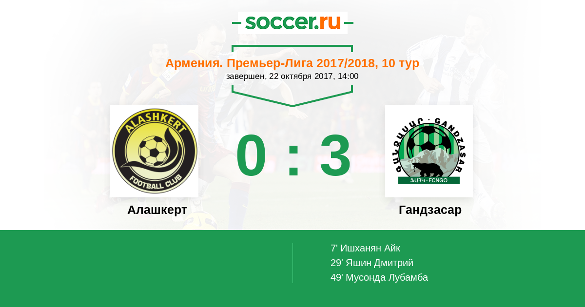Алашкерт - Гандзасар: обзор матча 22 октября 2017