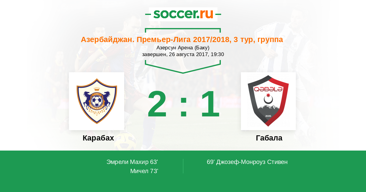 Карабах - Габала: обзор матча 26 августа 2017
