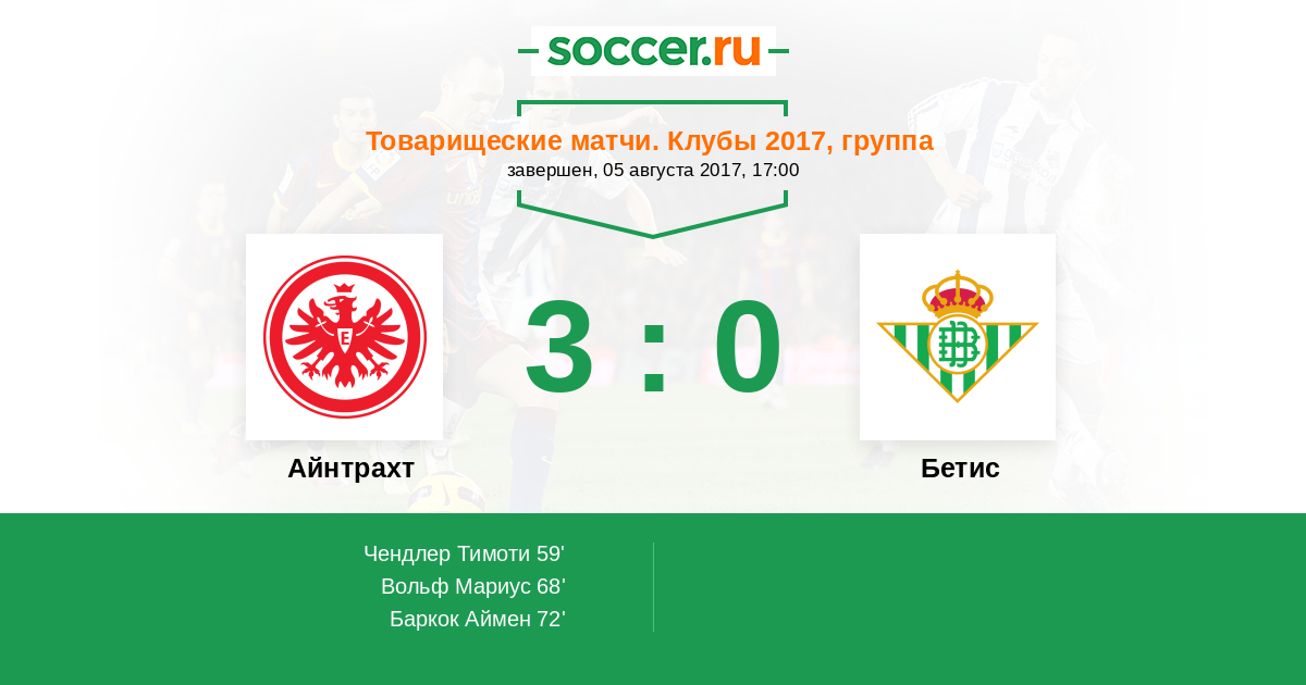 Айнтрахт - Бетис: обзор матча 5 августа 2017