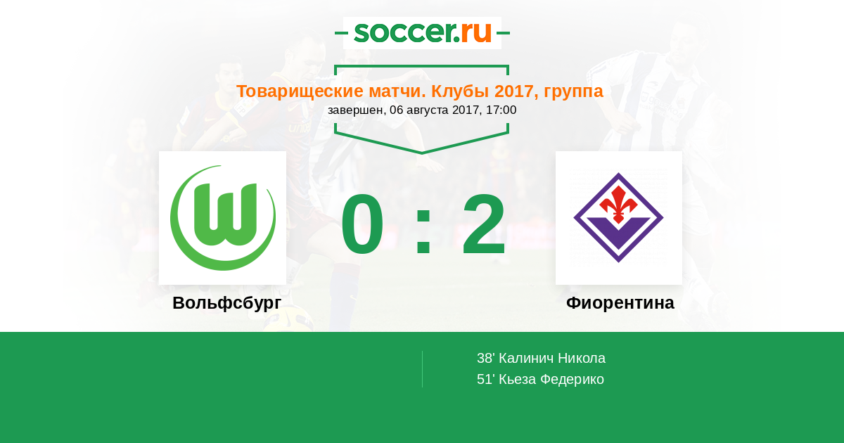 Вольфсбург - Фиорентина: обзор матча 6 августа 2017