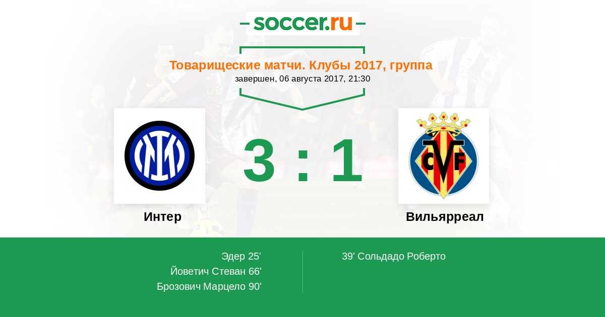 Интер - Вильярреал: обзор матча 6 августа 2017