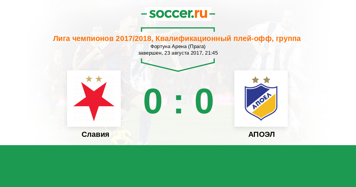 Славия - АПОЭЛ: обзор матча 23 августа 2017