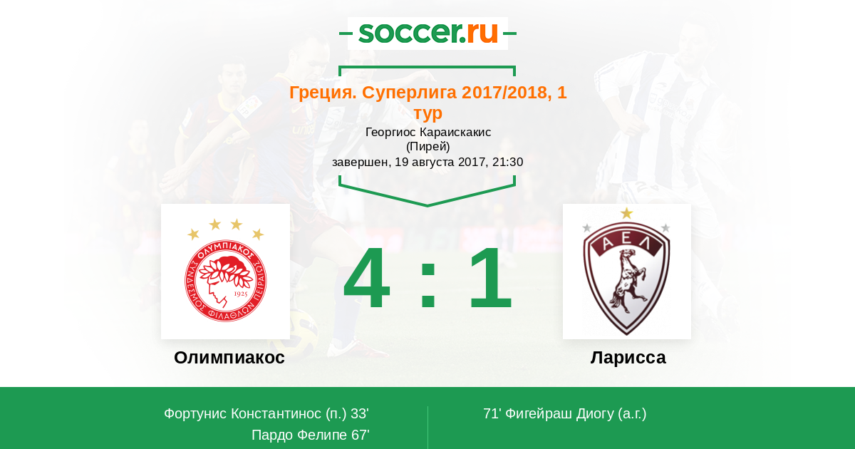 Олимпиакос - Ларисса: обзор матча 19 августа 2017