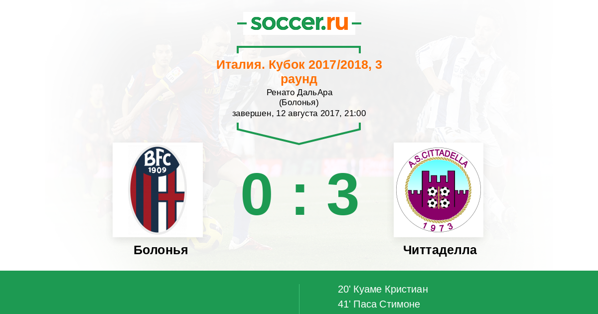 Болонья - Читтаделла: обзор матча 12 августа 2017