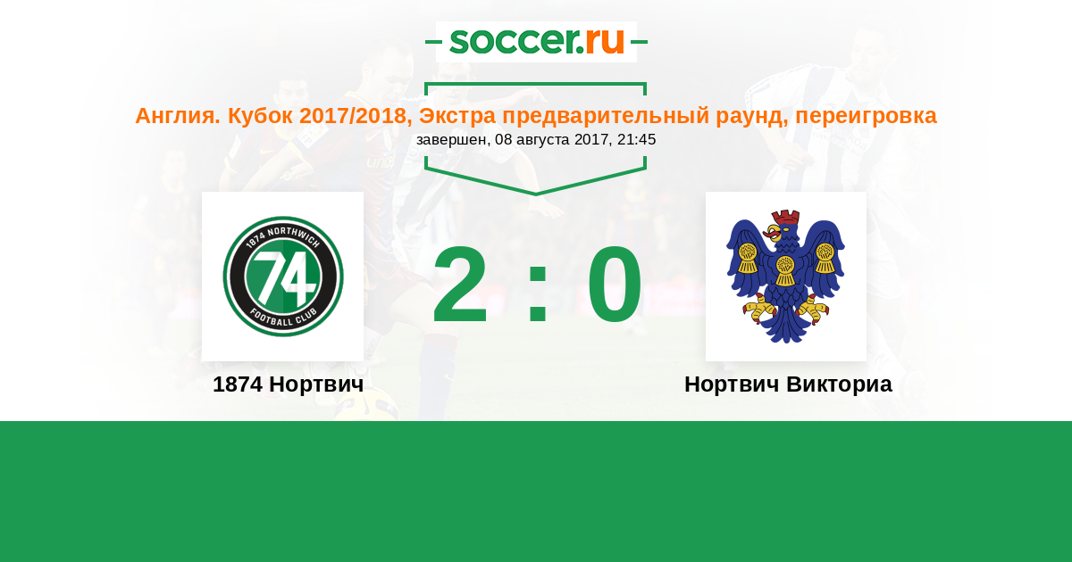 1874 Нортвич - Нортвич Викториа: обзор матча 8 августа 2017
