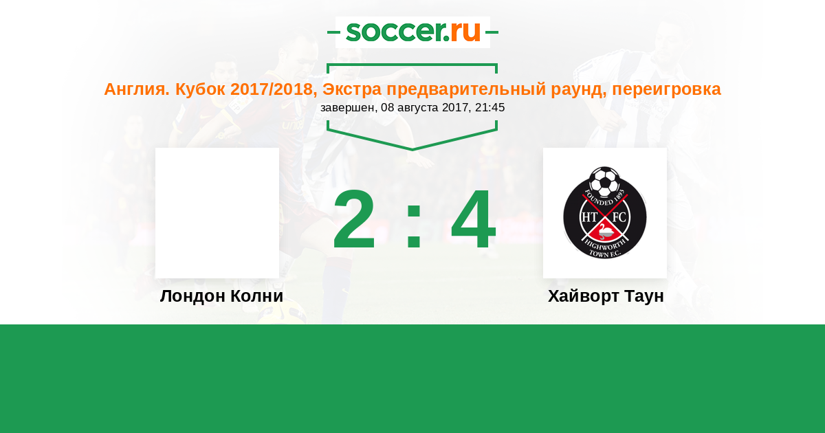 Лондон Колни - Хайворт Таун: обзор матча 8 августа 2017