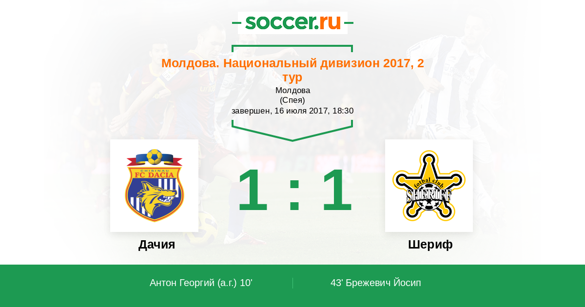 Дачия - Шериф: обзор матча 16 июля 2017