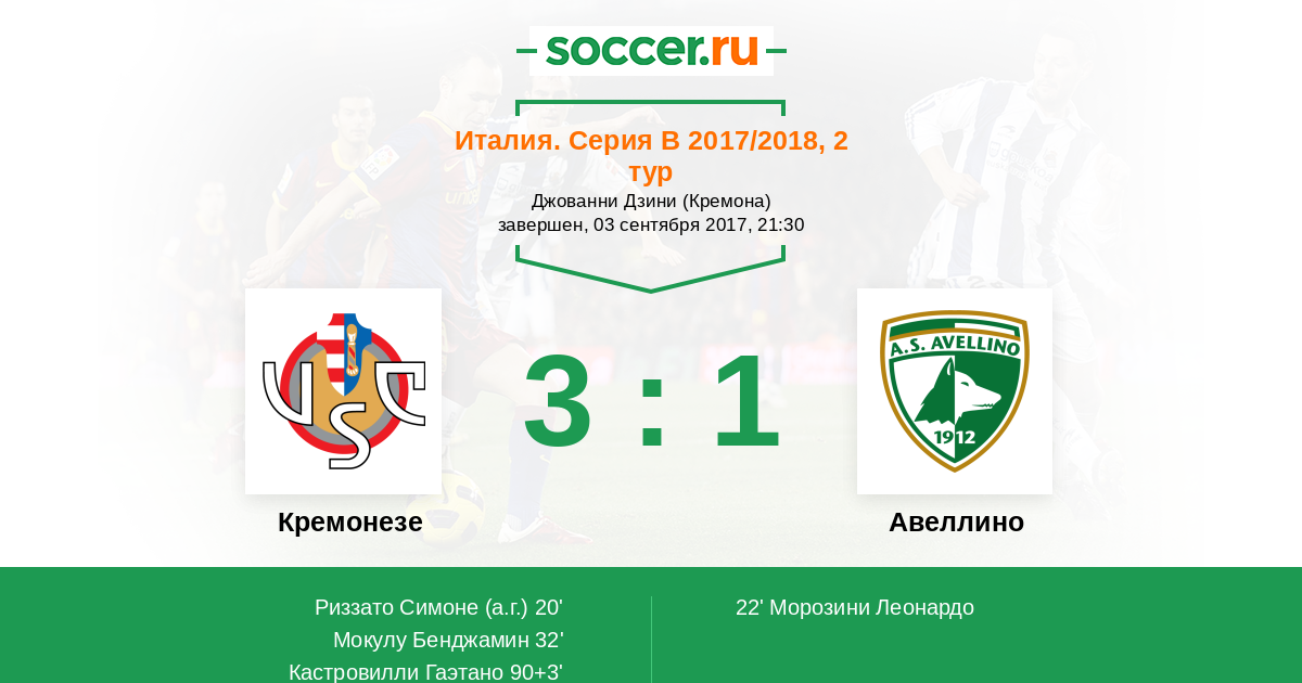 Кремонезе - Авеллино: обзор матча 3 сентября 2017