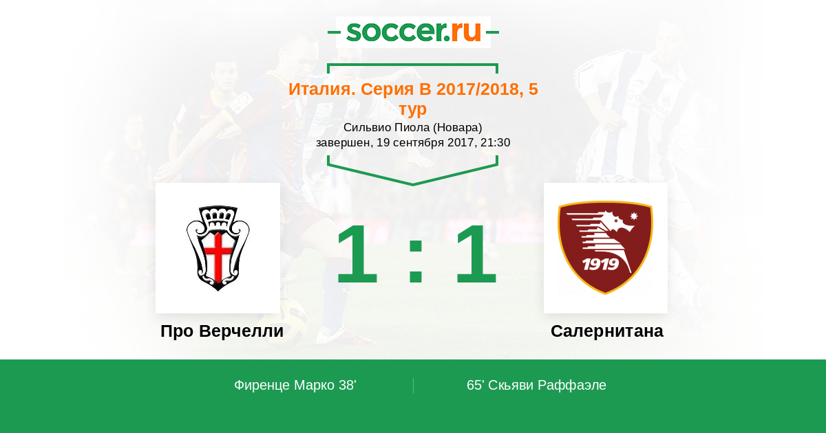 Про Верчелли - Салернитана: обзор матча 19 сентября 2017