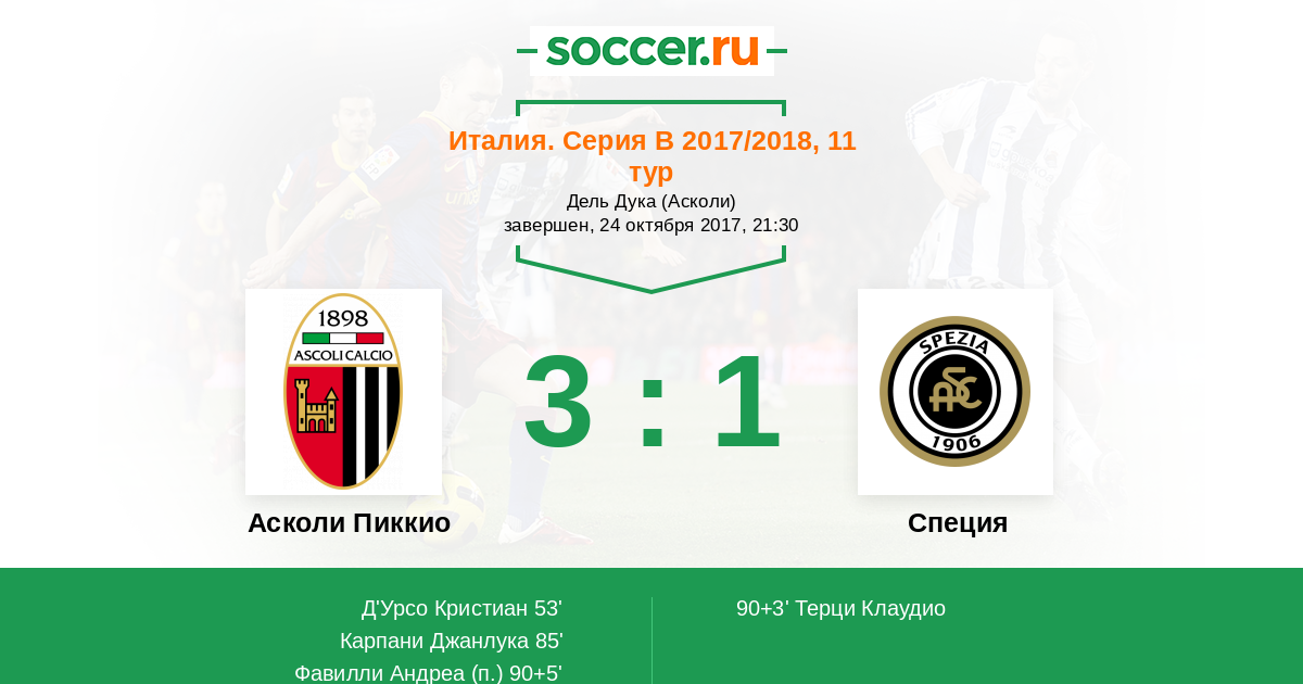 Асколи Пиккио - Специя: обзор матча 24 октября 2017