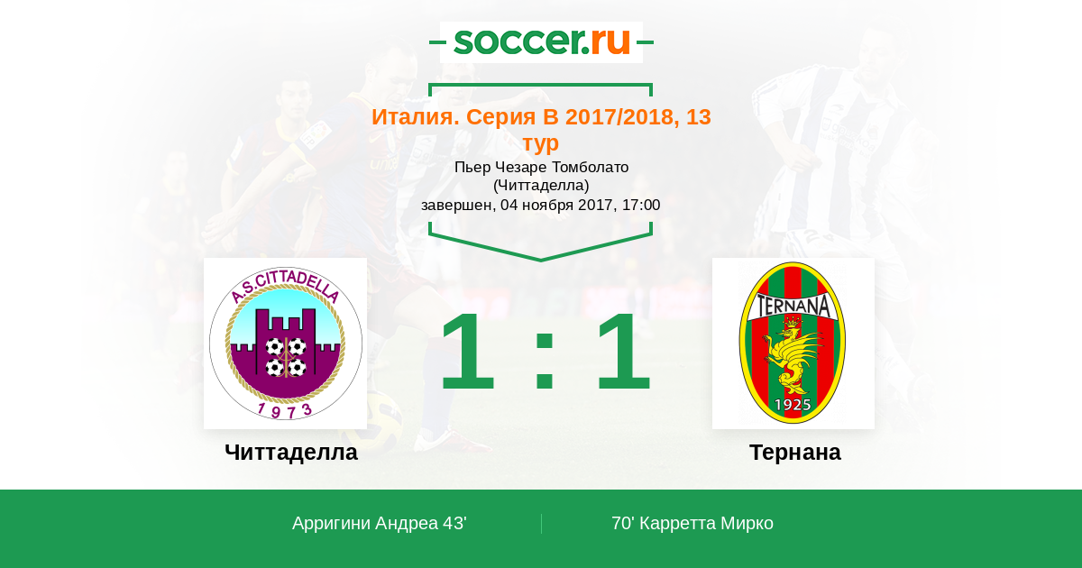 Читтаделла - Тернана: обзор матча 4 ноября 2017
