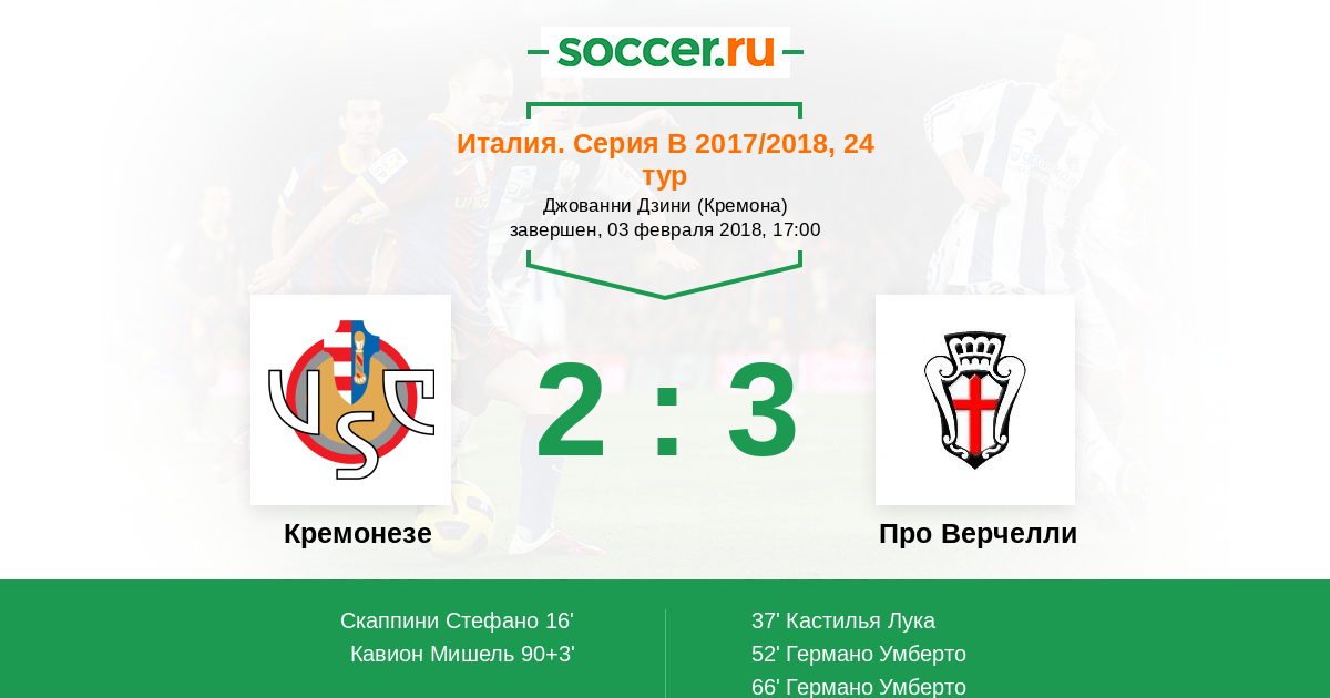 Кремонезе - Про Верчелли: обзор матча 3 февраля 2018
