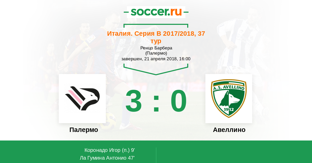 Палермо - Авеллино: обзор матча 21 апреля 2018