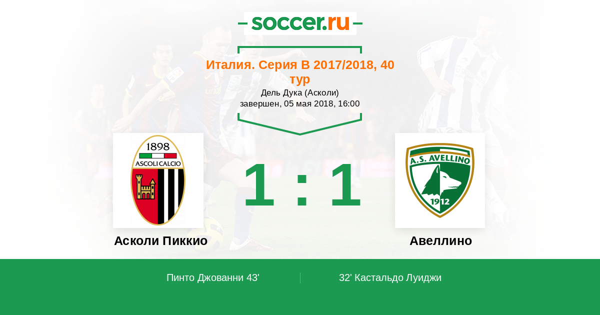 Асколи Пиккио - Авеллино: обзор матча 5 мая 2018